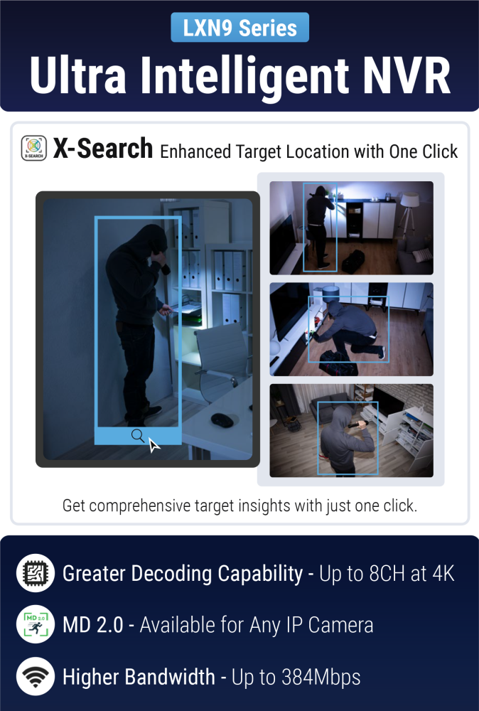 - 2 channels @ 32 MP / 8 ch @ 4K / 16 ch @ 4 MP