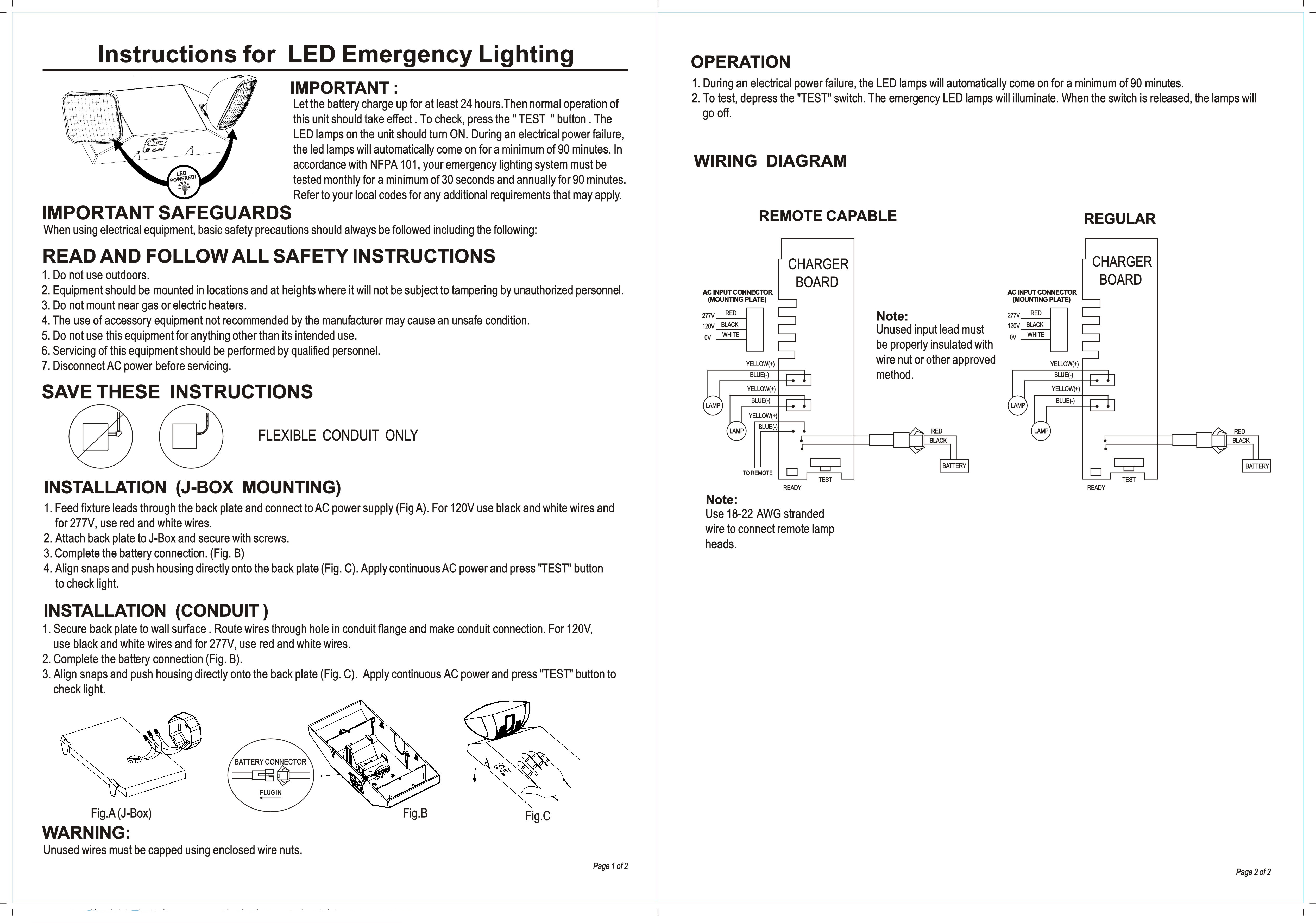 - Two 1.8W LED Lamp Heads, Eight LEDs Per Head, of Emergency Lighting