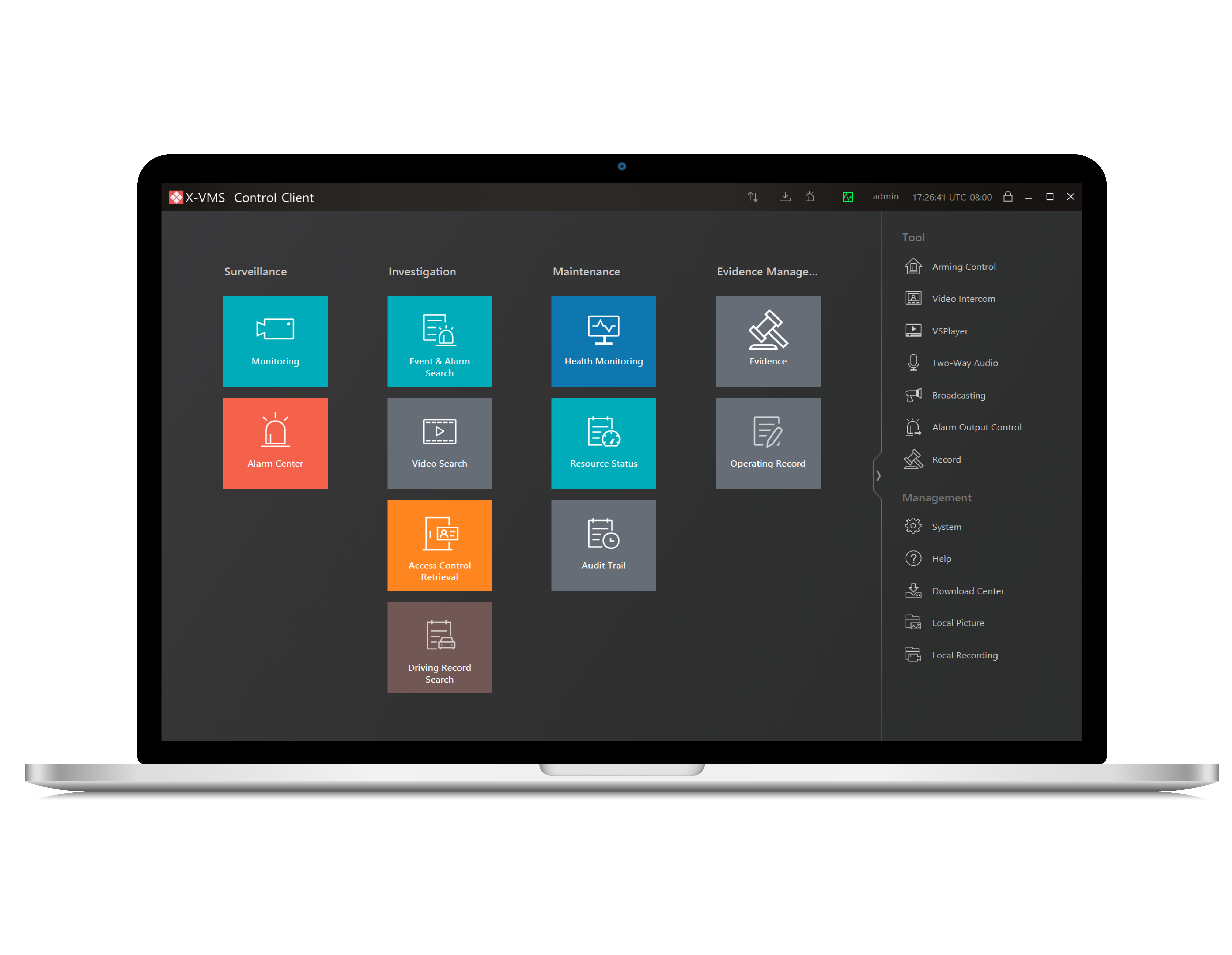 With X-VMS, you can manage multiple sites, multi-point access control systems, and large groups of cameras on LTS NVRs and DVRs.